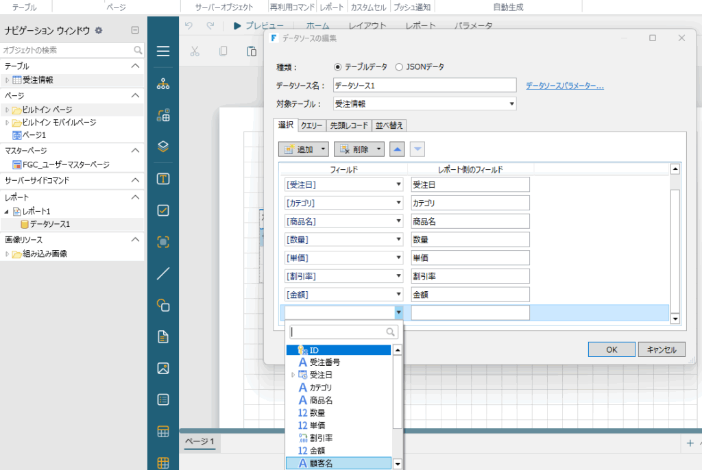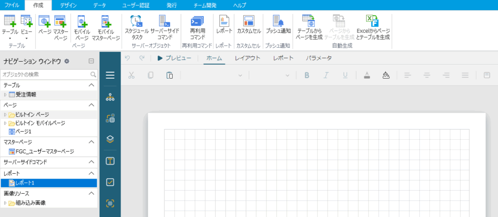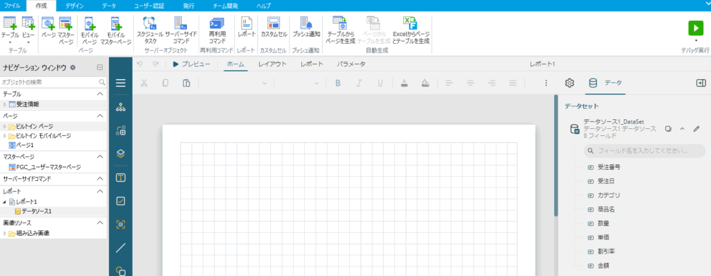 仕方がないので帳票を作ってみたいと思います。いやまて、そういえば「レポート」って機能があったなForguncyには…