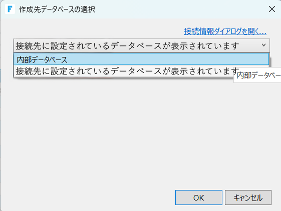 「内部データベース」と接続先として設定している外部データベースが選択できます。