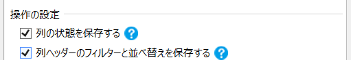 ②「操作の設定」で「列の状態を保持する」「列ヘッダーのフィルターと並び替えを保持する」にチェックを入れます。