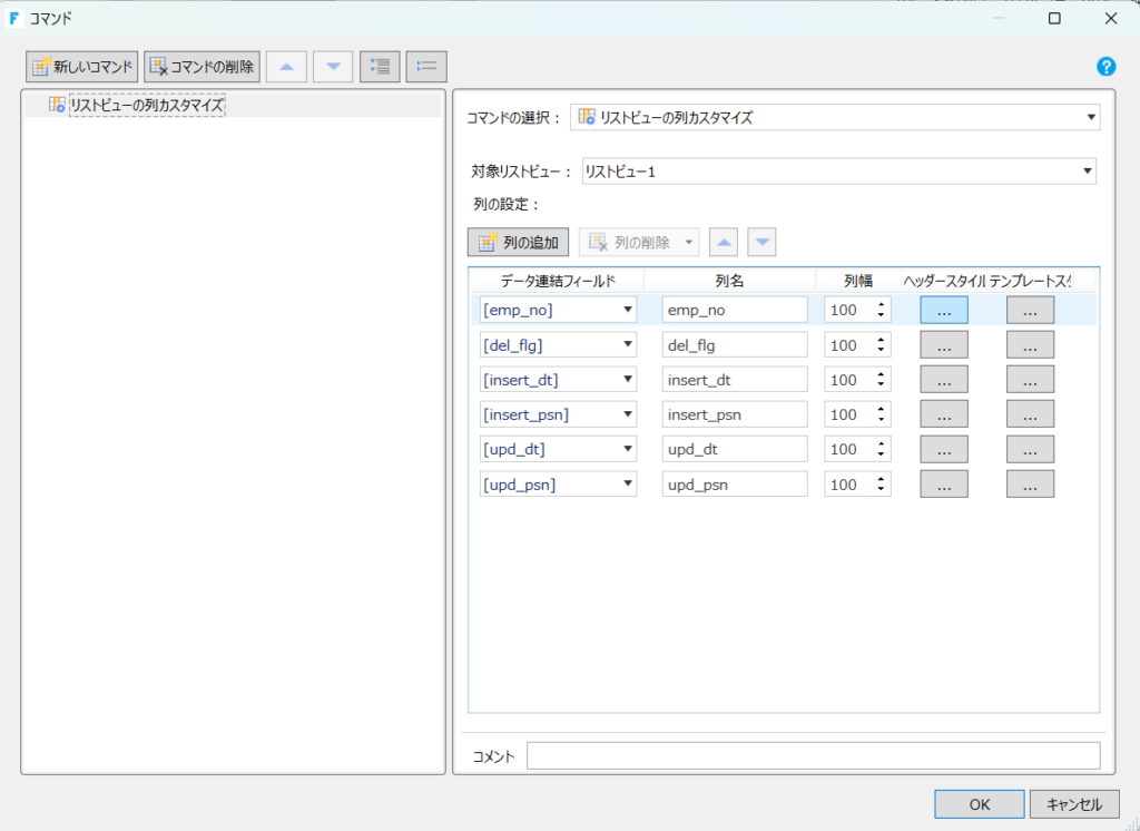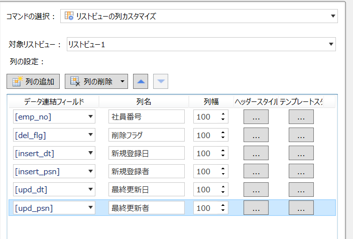 リストビューの列カスタマイズの設定