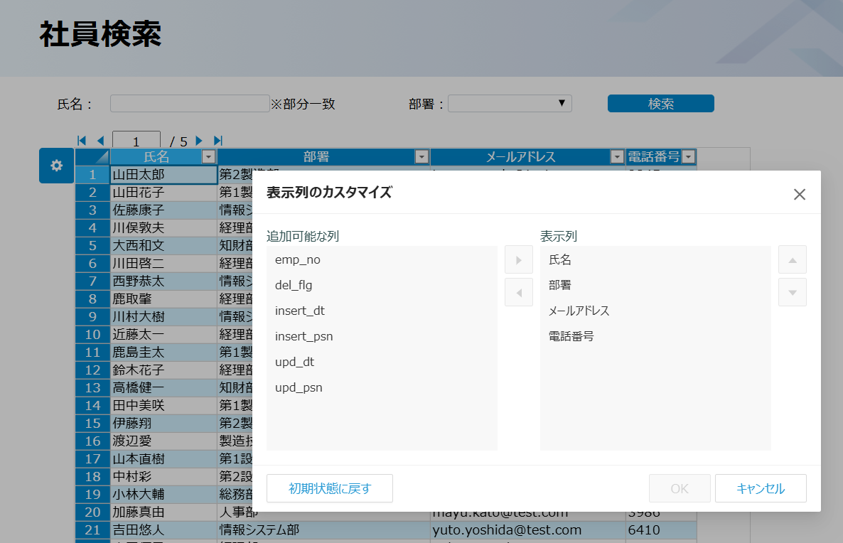 なお、編集可能とした場合に編集途中に列カスタマイズを実行した場合には、編集中の内容は確認メッセージなくクリアされます。