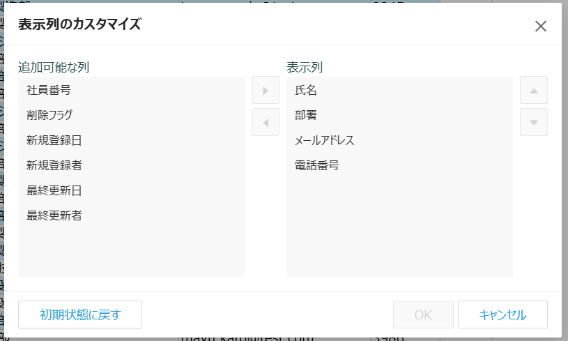- 「追加可能な列」の列を表示列に追加