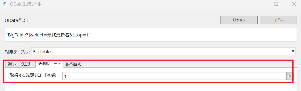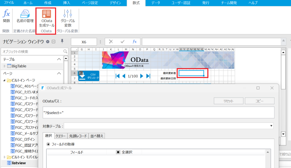 「数式」⇒「OData生成ツール」を選択します。