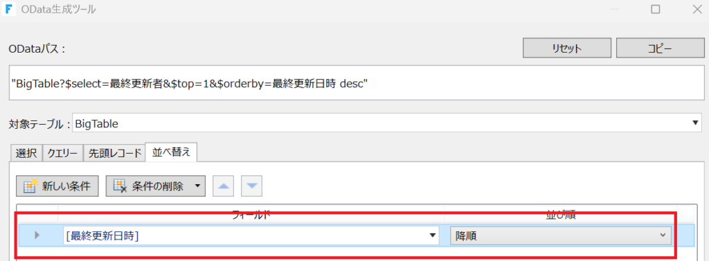 対象テーブルで「最終更新日時」を選択し、