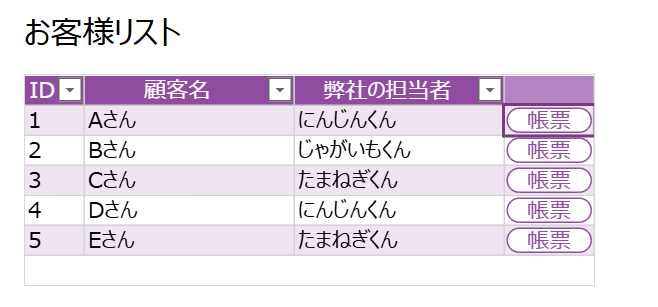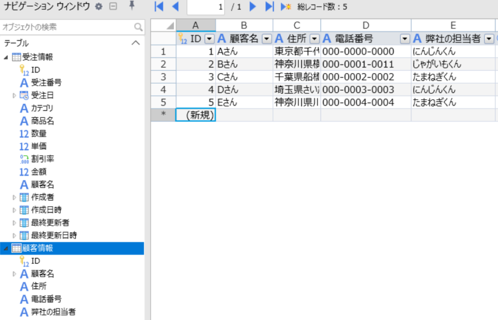こちらは新規で用意した顧客情報テーブル。雑ですが顧客名で関連付けしてます