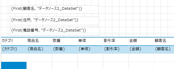 右側のデータセットに増えた項目、いつものリストビューを作るときみたいにドラッグ&ドロップで呼び出せたりするんじゃない?