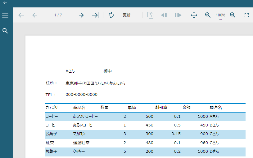 Aさん御中、かつ表の中身は顧客名「Aさん」の行だけ表示されている