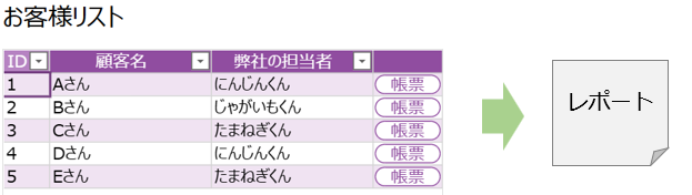 上記の再掲ですが、私が今回やりたいと思っているのはページから値を受け渡して、顧客別のレポートを作ることです。