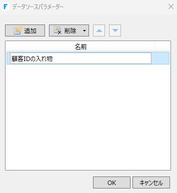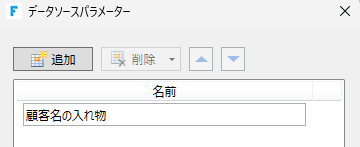 パラメーター一覧の追加ボタンを押して、先ほど設定した「顧客IDの入れ物」のパラメーターの下に今作った「顧客名の入れ物」を設定します。