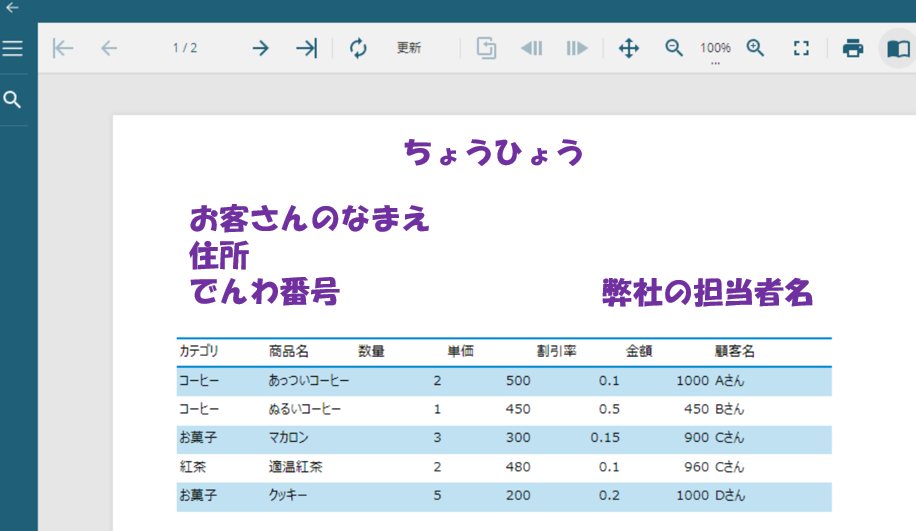 私が作りたいのはなんていうかこう、納品書みたいに宛先とか差出人とか書いてある感じのやつなんですよね。