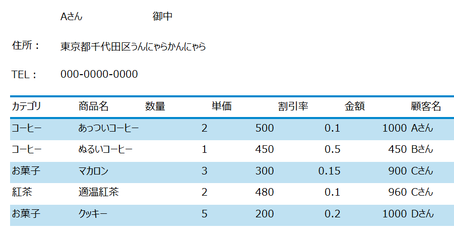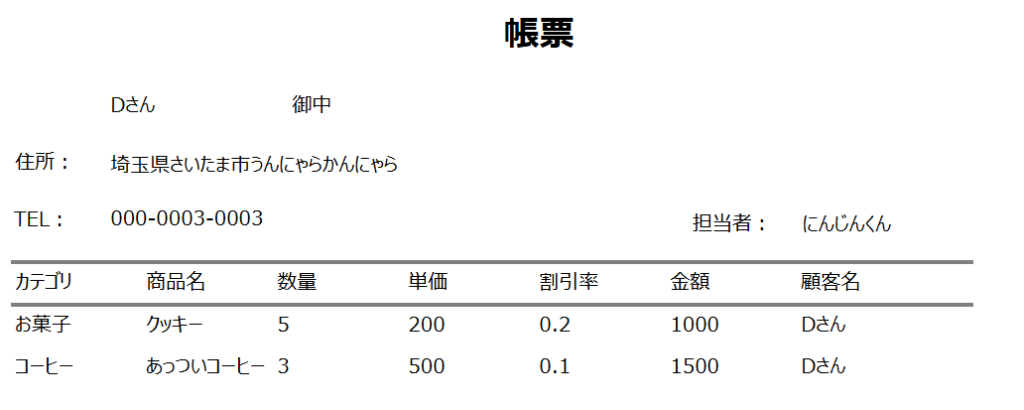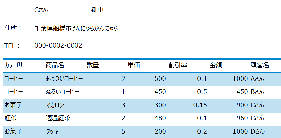 このままだと住所がすごい長い時に電話番号に被さってしまうかもとか、一つずつ顧客名だ住所だ電話番号だと項目を並べるのは面倒だなとか、気になる点はありました。