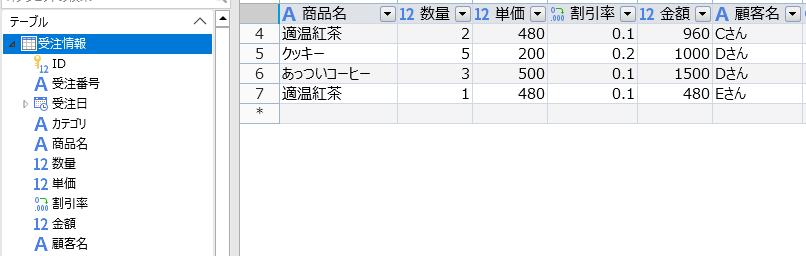 こちらは前回作った受注情報テーブル