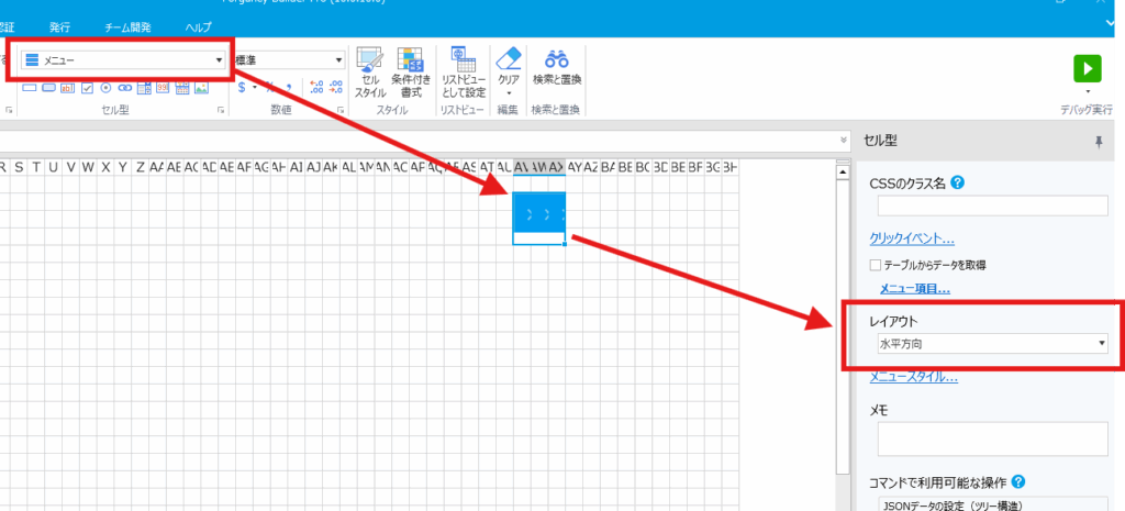 手順2.メニュー型セルを配置