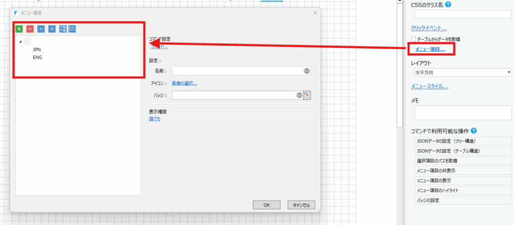 手順4.1階層目のメニューのアイコンを設定
