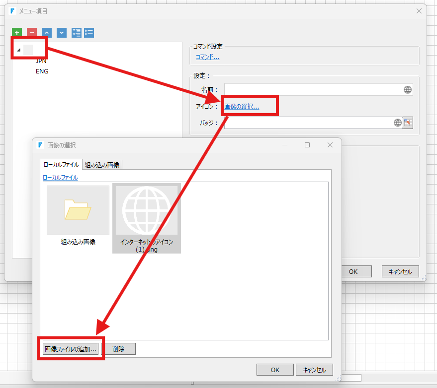 「 」(空白)を設定したメニューを選択して、「アイコン:画像の選択…」を選択