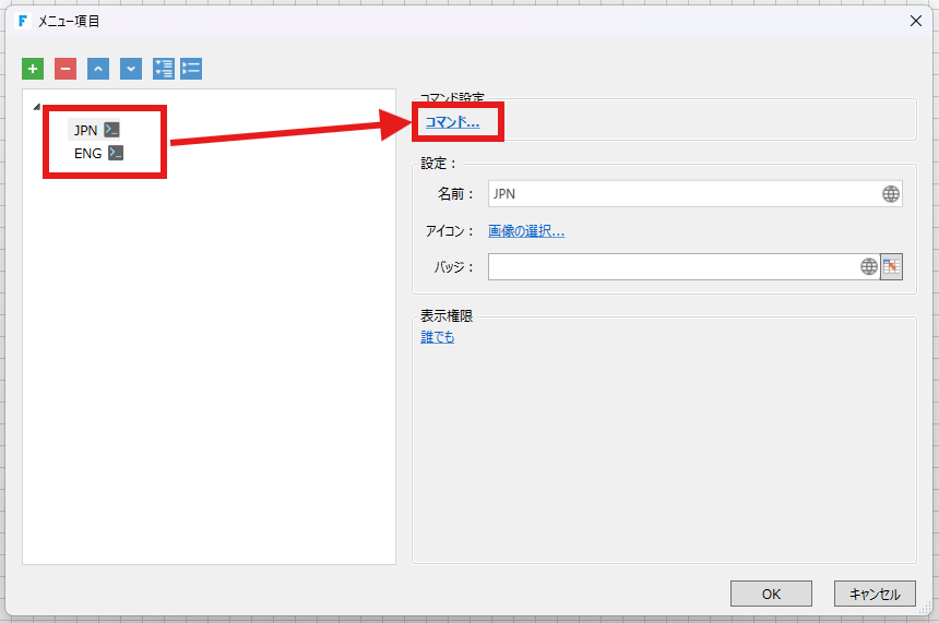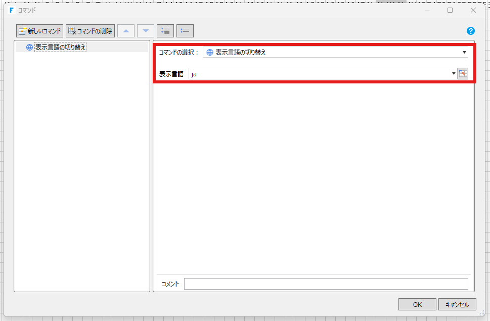 コマンドを設定します。